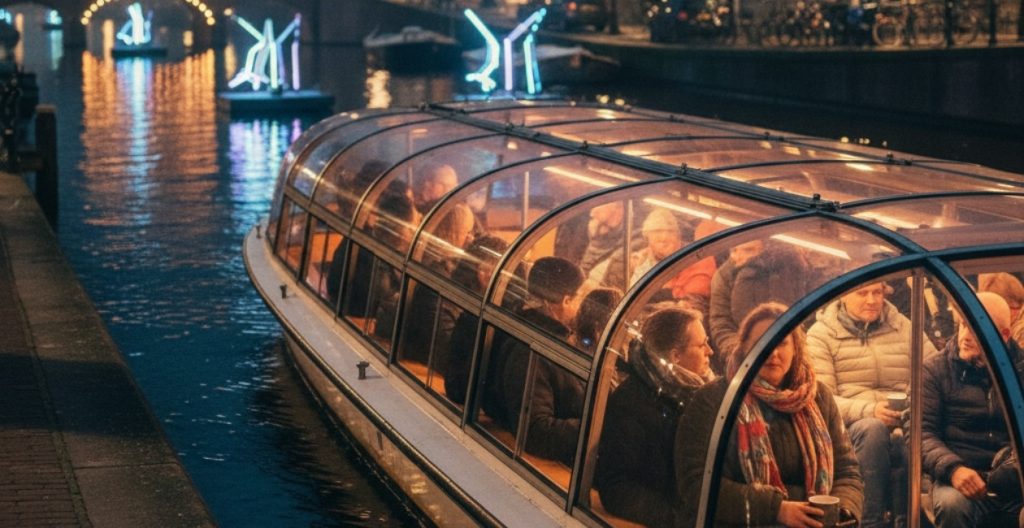 The Amsterdam Light Festival should definitely be on your travel itinerary if you’re thinking about visiting Europe in the winter. The city becomes an outdoor art gallery every year from late November to mid-January, complete with interactive artworks, light sculptures, glowing installations, and enchanted reflections on the canals. The festival has a dreamy and cinematic vibe. It is ideal for winter enthusiasts, whether you explore it on foot or by canal cruise. To help you enjoy the festival like a pro, this guide covers the precise routes, ticket types, best experiences, local advice, and travel planning. Key Takeaways: Every year, the Amsterdam Light Festival transforms the city into an outdoor gallery featuring 20–25 large-scale light artworks. It can be explored by boat, walking routes, or self-guided tours, each of which offers a completely distinct atmosphere and perspective. Depending on the duration, type of boat, and inclusions, tickets range from €18 to €32, depending on the boat operator. Unless you purchase an official map (€7.50) or participate in a guided walk (€15–€20), a walking route is free. The best viewing time is 5 pm – 10 pm, when reflections on the canals look magical for photography. Every year, the artwork is altered according to a theme, making each edition feel original, imaginative, and Instagram worthy. The festival routes are easily accessible if you stay close to Grachtengordel, Jordaan, Museumplein, or Nieuwmarkt. What is the Amsterdam Light Festival? The Amsterdam Light Festival (ALF) is an annual winter event. It is Europe’s most magical winter experiences.Every year in the winter, international artists create light-based artworks along the streets and canals as part of the Amsterdam Light Festival (ALF).It’s the ideal fusion of engineering, art, culture, and the famous canal charm of Amsterdam. It usually lasts 53–60 days. Features 20–25 art installations each year. Includes a theme, curated route, and interactive pieces. Best viewed by boat tours or walking routes. Attracts millions of tourists from all over the world. Amsterdam Light Festival 2025–2026 Dates & Timings Dates: End of November 2025 – Mid-January 2026 Lights On: Daily after sunset Timing: Usually 5 PM – 11 PM Special Days: Lights remain on till midnight during Christmas & New Year weekends. Best Ways to Experience the Amsterdam Light Festival There are two main ways to explore the festival: 1. Boat Route (Highly Recommended) The festival is designed to be seen from the water. Canal cruises give you the closest and clearest views. Why choose the boat tour? You pass directly under or beside installations. Warm boats = comfortable winter experience. No walking in cold winds. Audio guide included. Best for couples, families, senior travellers. Boat Tour Duration 60–75 minutes on average. Boat Tour Starting Points Most boats depart from: Amsterdam Central Station (East Side) Museumplein / Rijksmuseum area Amsterdam Amstel area 2. Walking Route (Budget-Friendly) A self-guided walking route lets you enjoy the installations at your own pace. Why choose the walking route? Free (if self-guided). Perfect for photographers. Lets you enjoy small cafés, Christmas markets, and canal views. You can explore narrow bridges and alleys the boats don’t access. Walking route time: 1.5 to 2.5 hours depending on pace. Amsterdam Light Festival Walking Route (Step-by-Step Itinerary) The route usually changes every year, but the general path follows Amsterdam’s historic canal belt. Here’s the most widely used route outline: Start Point: Oosterdok (Opposite NEMO Science Museum) This is where many installations begin. The waterfront area glows beautifully at night, with reflections dancing on the calm water. What you’ll see here: Large-scale sculptures Intro light installation Boats lined up for cruises City skyline lights Stop 2: Maritime Museum Bridge A picturesque arch bridge with beautiful festival visuals. What to expect: One of the most photographed installations Reflections in water Great for wide-angle shots Stop 3: Entrepotdok Canal A quiet, narrow canal with light artworks stretching between the buildings. Highlights: Suspended installations Moving light artwork Silent, peaceful ambiance Stop 4: Nieuwe Herengracht This area often hosts the biggest centerpiece artwork. You’ll find: Large interactive installations Color-changing light structures Drone-friendly area (follow local rules) Stop 5: Amstel River One of the most iconic sections of Amsterdam. What makes it special: Open water space = huge installations Photo-friendly bridges Stop for mulled wine or hot chocolate nearby Stop 6: Hermitage Museum / Magere Brug (Skinny Bridge) This glowing white wooden bridge becomes stunning under festival lighting. Perfect for: Couple photos Drone photography (where permitted) Slow walking + nighttime river views End Point: Stopera (City Hall & Opera House) The final part usually features immersive or message-based installations. Amsterdam Light Festival Tickets (Complete Breakdown) Boat Tour Tickets Average price: €22 – €29 (standard tourist boats) €35 – €45 (luxury heated boats) €50+ (private boat or small group tours) What’s included: Entry to water route Guided audio commentary Blankets on some boats Hot chocolate or drinks (depending on provider) Walking Route Tickets (Optional) You can walk the festival for free, but they also sell: Official Walking Map (€7–€10) Audio Guide App (€5–€8) Where to Book Tickets Book from: Official Amsterdam Light Festival website City boat companies: Blue Boat Lovers Canal Cruises Stromma Tours & activities platforms: GetYourGuide Viator Tiqets Pro Tip: Book at least 2–6 days earlier. As weekend cruises sell out fast. How to Reach the Festival Route From Amsterdam Central Station: Walk 5–10 minutes to the starting point Or take tram 26 or 14 From Schiphol Airport: Train to Amsterdam Central (15–20 minute