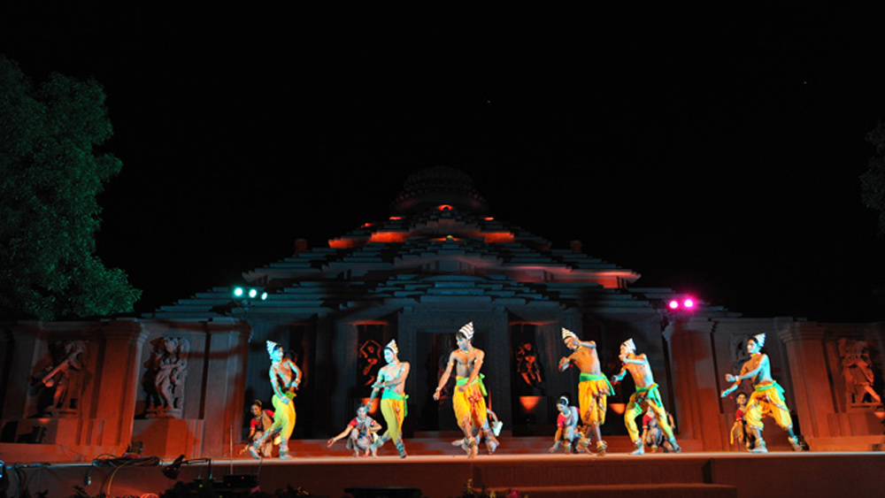 The wintertime is cold and the ancient stone walls are illuminated by the silver light of the moon. The cold winter night is filled with the sound of the rhythmic beat of thousands of Ghungroos ringing out in the night. Spotlights illuminate the magnificent Sun Temple in Konark while the dancers walk out onto the open stage, moving with the grace of gods and goddesses, sharing stories through their dancing that have been passed down for centuries.