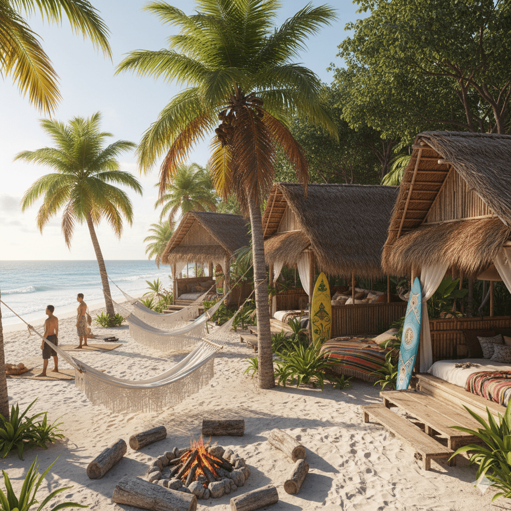 • Unique Experience: Morning surf lessons, yoga under palm trees, and no-pressure community dinners.